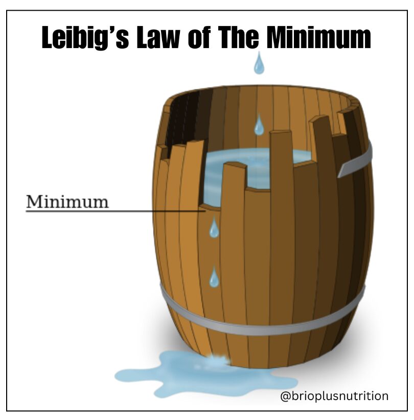 Protein synthesis in the body depends on the availability of all essential amino acids. The entire process slows or stops if even one is missing or inadequate. Liebig’s Law of the Minimum best explains this. Imagine a wooden barrel of staves, each representing a different essential amino acid. The barrel can only hold as much water as the shortest stave allows. Likewise, your body can only build proteins to the extent that all required amino acids are available in adequate amounts. If one is lacking, the others go to waste.